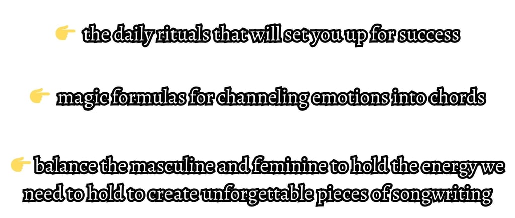 After you sign up I'll also send you weekly songwriting wisdom and goodies, cool?